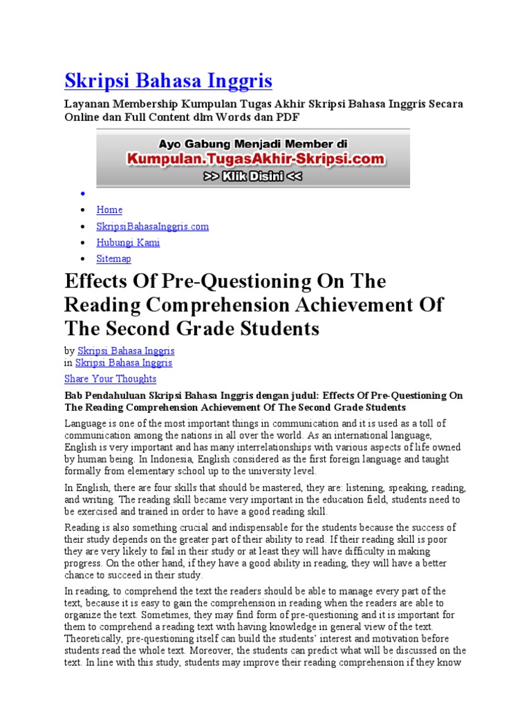 Kumpulan judul skripsi bahasa inggris. In this skripsi the writer uses the degree of significance of 5% and 1%. Skripsi yang tersusun lengkap (word) download disini >> download. 2 responses to contoh skripsi bahasa inggris bab 1,2,3. Bloom taxonomies applied in teaching readingat smp muhammadiyah 6 malang.
